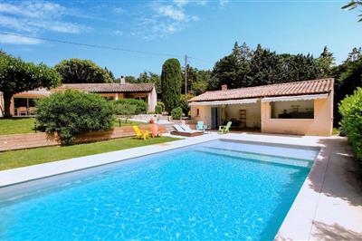 Freuen Sie sich auf einen bezaubernden Panoramablick in diesem großzügigen Ferienhaus mit Pool. Eingebettet in die ruhige, malerische Landschaft der Provence, heißt Sie dieses komfortable Urlaubsdomizil willkommen. Hier steht alles für einen entspannten