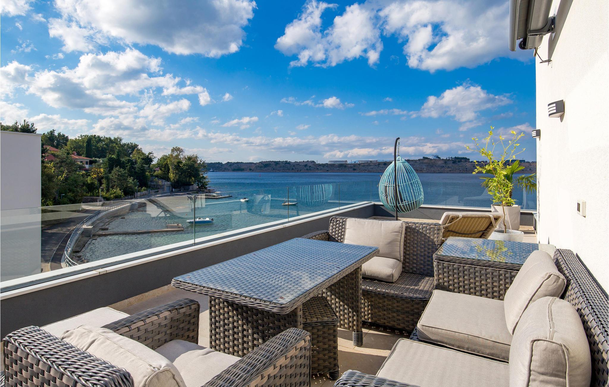 5,0Schöne und komfortable Ferienwohnung mit großer Terrasse und Meerblick. Diese schöne Ferienwohnung liegt in einem Ferienwohnungpark außerhalb von Omišalj auf der Insel Krk und wird Sie durch ihr modernes Interieur sowie die atemberaubende Aussicht auf das