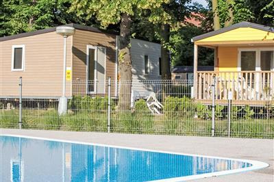 3,5"Sunset Terrace", 3-Zimmer-Mobilheim 24 m2. Wohnzimmer mit Esstisch. 1 Zimmer mit 1 Doppelbett. 1 Zimmer mit 2 Betten. Küche (4 Flammen, Mikrowelle, Tiefkühler, elektrische Kaffeemaschine). Dusche, sep. WC. E-Heizung. Terrasse. Terrassenmöbel. Zur Verfügung: