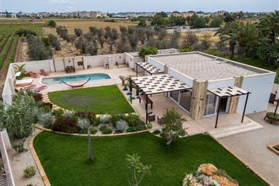 5,06-Zimmer-Villa 240 m2, im Erdgeschoss. Sehr stilvoll und gemütlich eingerichtet: Eingang. Salon. Esszimmer mit Internationale TV-Sender, Klimaanlage und Warmluftheizung. Ausgang zur Terrasse. 1 Doppelzimmer mit begehbarem Kleiderschrank mit Dusche/Bidet/WC,