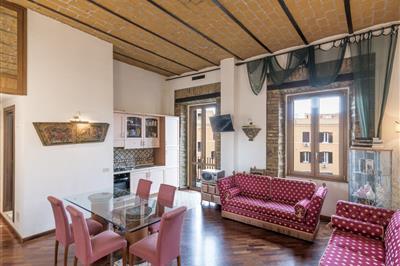 4,4"Testaccio Piramide", 2-Zimmer-Wohnung 50 m2 im 1. Stock. Komfortabel und gemütlich eingerichtet: Wohn-/Esszimmer mit 1 Diwanbett (120 cm), Digital-TV und Klimaanlage. 1 Doppelzimmer mit Klimaanlage. Küche (Backofen, Geschirrspüler, 4 Flammen, Wasserkocher).