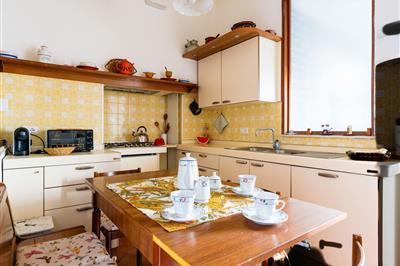 3,7"Casa del Capitano", 4-Zimmer-Wohnung 140 m2 im 1. Stock. Sehr geschmackvoll und gemütlich eingerichtet: Wohn-/Esszimmer. 1 Doppelzimmer. Ausgang zum Balkon. 1 Zimmer mit 2 x 1 Etagenbetten (90 cm, Länge 200 cm). 1 Zimmer mit 1 franz. Bett (140 cm, Länge 200
