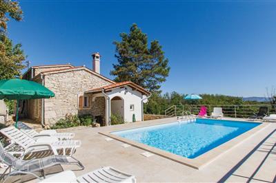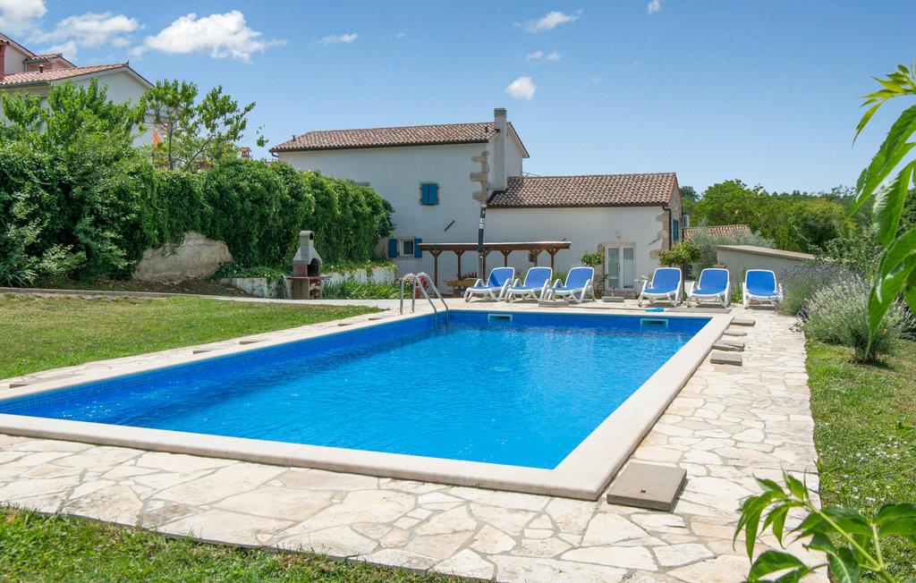 Dieses niedliche Ferienhaus mit Pool im traditionellen istrischen Stil befindet sich im kleinen Dorf Zupanici. Es ist ein Erdgeschosshaus mit erhöhtem Erdgeschoss und besteht aus einer Wohnküche, zwei Badezimmern und drei Schlafzimmern. Der Außenbereich ist