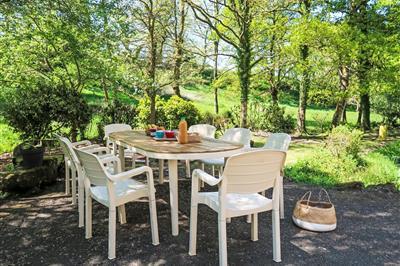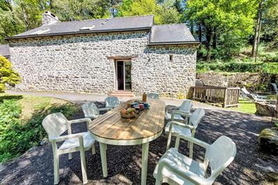 4,0"Le Moulin de Glenn", 9-Zimmer-Haus 190 m2 auf 2 Stockwerken. Gemütlich eingerichtet: Eingang. Grosses Wohn-/Esszimmer mit offenem Kamin und TV (Flachbildschirm). Ausgang zur Terrasse. 1 Zimmer mit 1 franz. Bett (140 cm, Länge 190 cm). Offene Küche (Backofen,