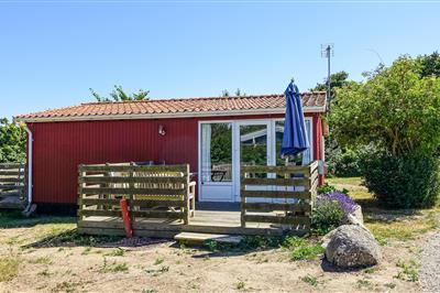 Helle Ferienwohnung mit 27 Quadratmetern, gelegen mit einem schönen Blick über die Felder im sanft abfallenden Gelände und über die Ostsee mit Christiansø in der Ferne. Die Ferienwohnung ist mit einem Wohnraum, einer kleinen Küche, einem einladenden
