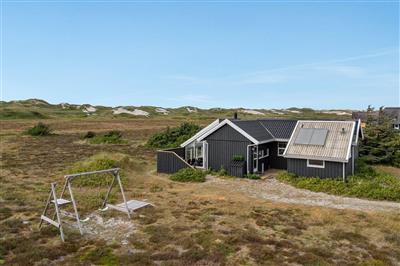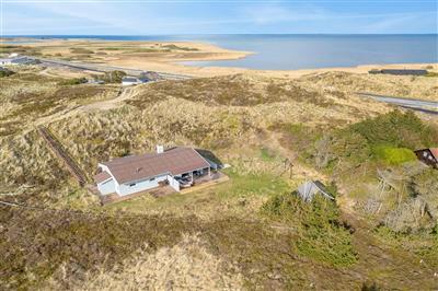 Im Schutz der Dünen liegt dieses schöne Ferienhaus, das von einer zum Teil überdachten und abgeschirmten Terrassenfläche umgeben ist. Auf dem höchsten Punkt des Grundstücks, von wo aus Sie eine herrliche Aussicht über den Fjord und die Umgebung haben, steht