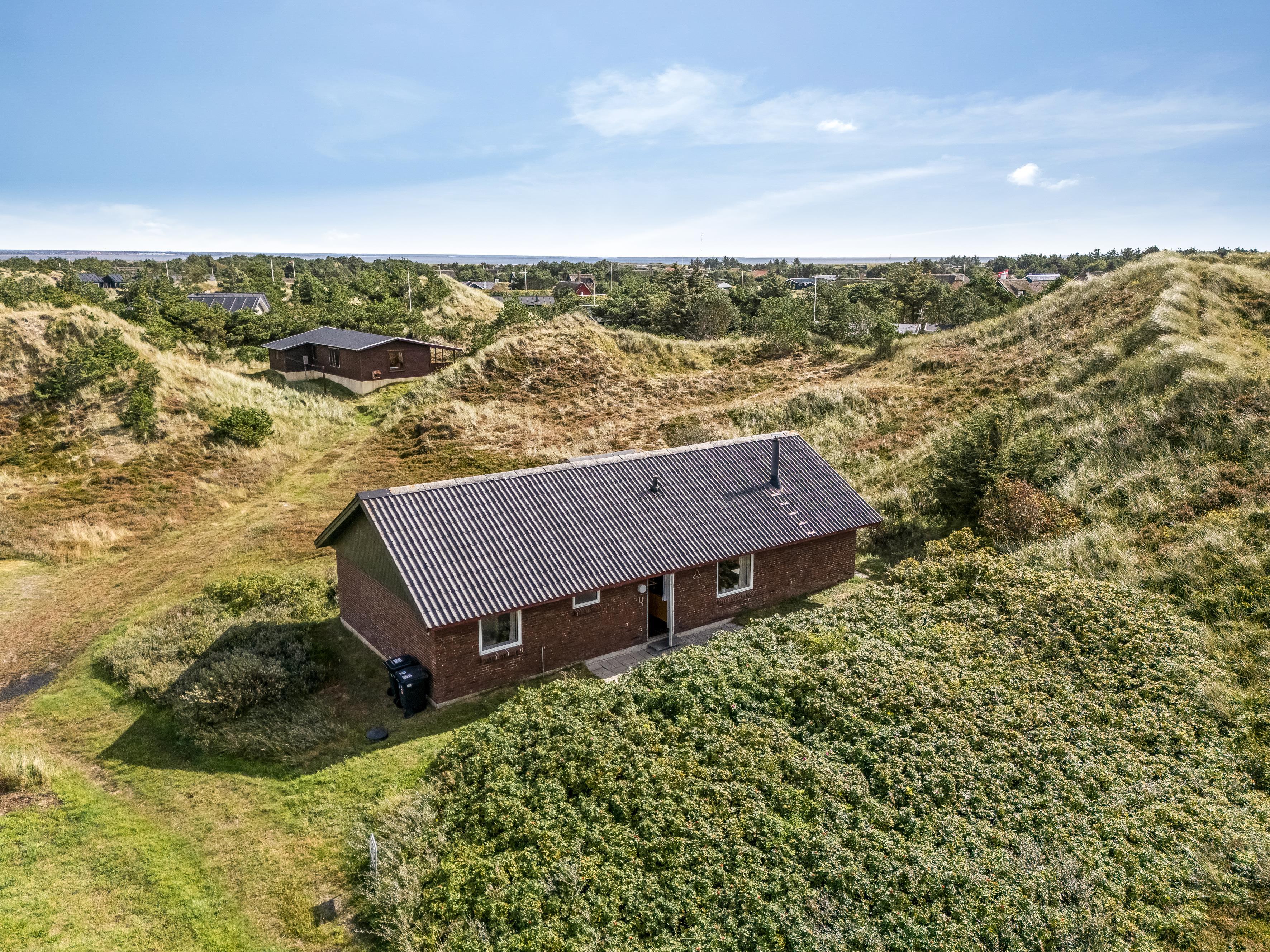 5,0Ein phantastisch gelegenes Ferienhaus mit Blick auf die Dünenlandschaft, das Meer und den Fjord. Das Haus ist auf einem Bunker errichtet, der heute als Aktivitätsraum eingerichtet ist – hier können Sie viele vergnügliche Stunden miteinander verbringen. Ein