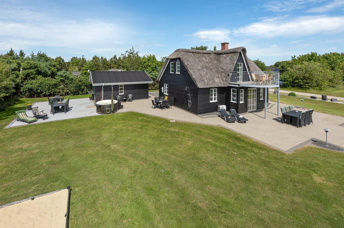 4,5Nettes Luxusferienhaus in 2 Etagen gebaut und mit Aussicht über Ringkøbing Fjord vom Obergeschoss, auf einem schönen Naturgrundstück gelegen. Das Haus aus Holz und mit Reetdach ist 2008 gebaut. Zum Haus gehört sowohl offenes als überdachtes Terrassenareal mit