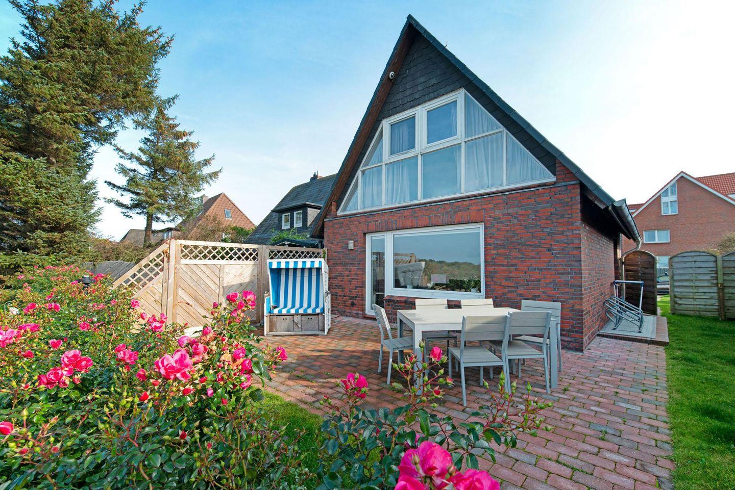 4,8Gemütlich. Ruhig. Garten. 3-Zimmer-Ferienwohnung auf zwei Ebenen (OG|DG) in Morsum mit ca. 65 qm für bis zu 2 Erwachsenen und 2 Kindern. 2 Schlafzimmer, Badezimmer mit Dusche, offene Küche zum Wohn-/Essbereich, Loggia nach Süden, Sonnenfreisitz, WLAN