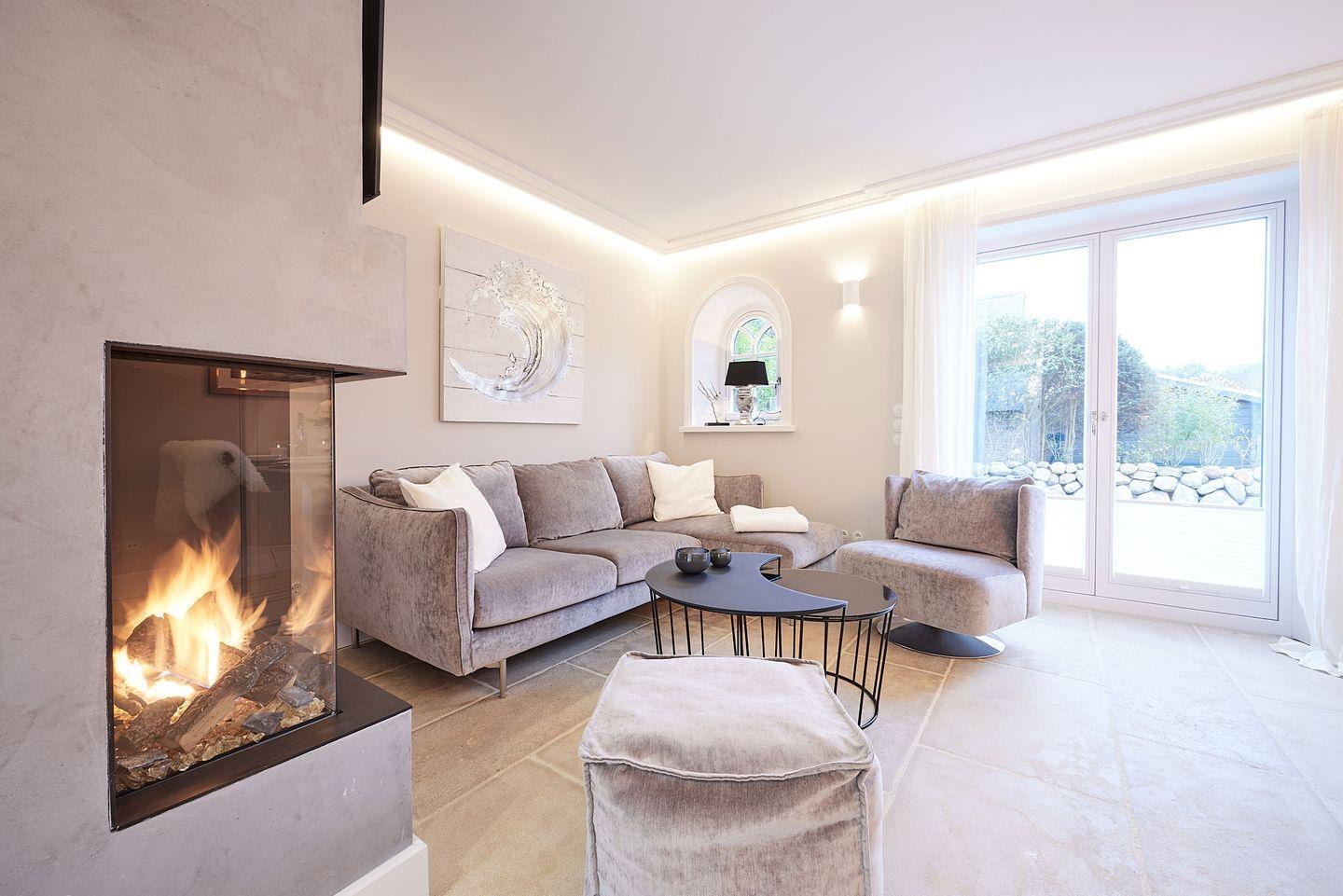 4,8Reet. Luxus. Neubau. Doppelhaushälfte unter Reet auf drei Ebenen (EG|UG|OG) in Wenningstedt mit ca. 120 qm für bis zu 6 Personen. 3 Schlafzimmer, 2 Badezimmer mit Dusche, 2 Gäste-WC, offene Küche zum Wohn-/Essbereich, Kamin, Sauna, Garten mit 2 Terrassen,