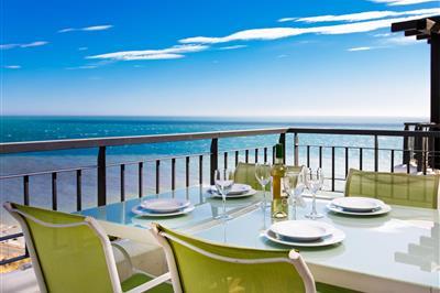 5,0"Sea Front", 3-Zimmer-Wohnung 74 m2. Geräumig und hell, zweckmässig und komfortabel eingerichtet: Wohn-/Esszimmer mit Digital-TV, Klimaanlage und Warmluftheizung. Ausgang zur Terrasse. 1 Zimmer mit 2 Betten (90 cm, Länge 190 cm), Klimaanlage und