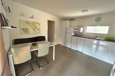 Modernes Mobilheim mit Meerblick – Familie Auszeit an der dalmatinischen Küste 32?m², 2 Schlafzimmer (Doppelbett & Einzelbetten), 2 Bäder, voll ausgestattete Küche mit Geschirrspüler, SAT-TV & WLAN. Überdachte Terrasse mit traumhaftem Meerblick. Nur wenige
