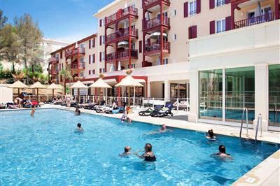 4,0"Le Cap Azur", 2-Zimmer-Wohnung 43 m2. Hell, modern eingerichtet: Wohn-/Schlafzimmer mit 1 Doppeldiwanbett, Esstisch und TV. 1 Zimmer mit 1 franz. Bett (160 cm). Offene Schlafnische mit 1 x 2 Etagenbetten (80 cm). Kochnische (Geschirrspüler, 4