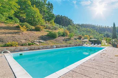 Freuen Sie sich auf diese geräumige und traditionelle Villa mit Pool inmitten der idyllischen toskanischen Natur. Diese große und farbenfrohe Villa in Dicomano, umgeben von sanften Hügeln und üppigem Grün, bietet Ihnen die Gelegenheit, dem Alltag zu