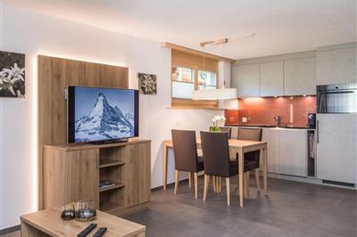 0,0Das Ferienhaus "Felicé" liegt etwas ausserhalb von Zermatt im Quartier "Winkelmatten". Hier vermieten wir die Ferienwohnung "Breithorn" für 2 - 4 Personen. Diese sehr geräumige 2½ - Ferienwohnung (45m²) verfügt über 1 Doppelzimmer und ein Wohnzimmer mit