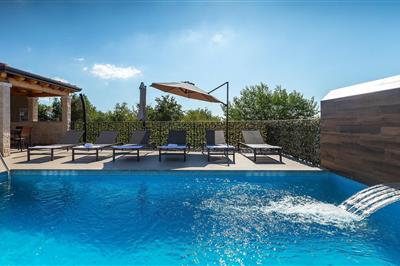 Das ist die Traumvilla, die Sie so lange gesucht haben! Die Designer-Villa Sara Kastelir nahe Porec ist der perfekte Ort für einen luxuriösen Urlaub mit Familie und Freunden! Schon das Exterieur zeugt von Stil. Ein 66m2 großer Pool ist eindeutig der