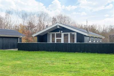 3,8In einer ruhigen, kleinen Straße eines Ferienhausgebietes, nahe des Hafens von Bork Havn, findet man dieses traditionelle Ferienhaus. Es liegt auf einem sonnigen Rasengrundstück mit schützender Randbepflanzung, das leicht abfallend ist. Genießen Sie hier die