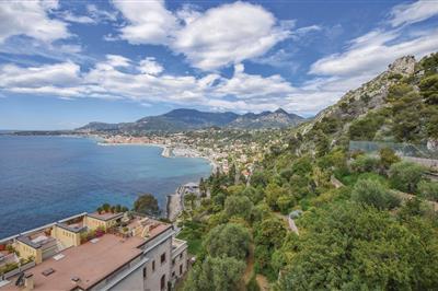 4,4Appartement Borgo Verde in Imperia Haus: In herrlich grüner Umgebung von 25.000 qm mit einem atemberaubenden Blick auf die Küste. Die Ferienanlage liegt erhöht über dem Meer. Um zu Strand zu gelangen, laufen Sie ca. 20 Minuten den Hügel hinab oder nutzen