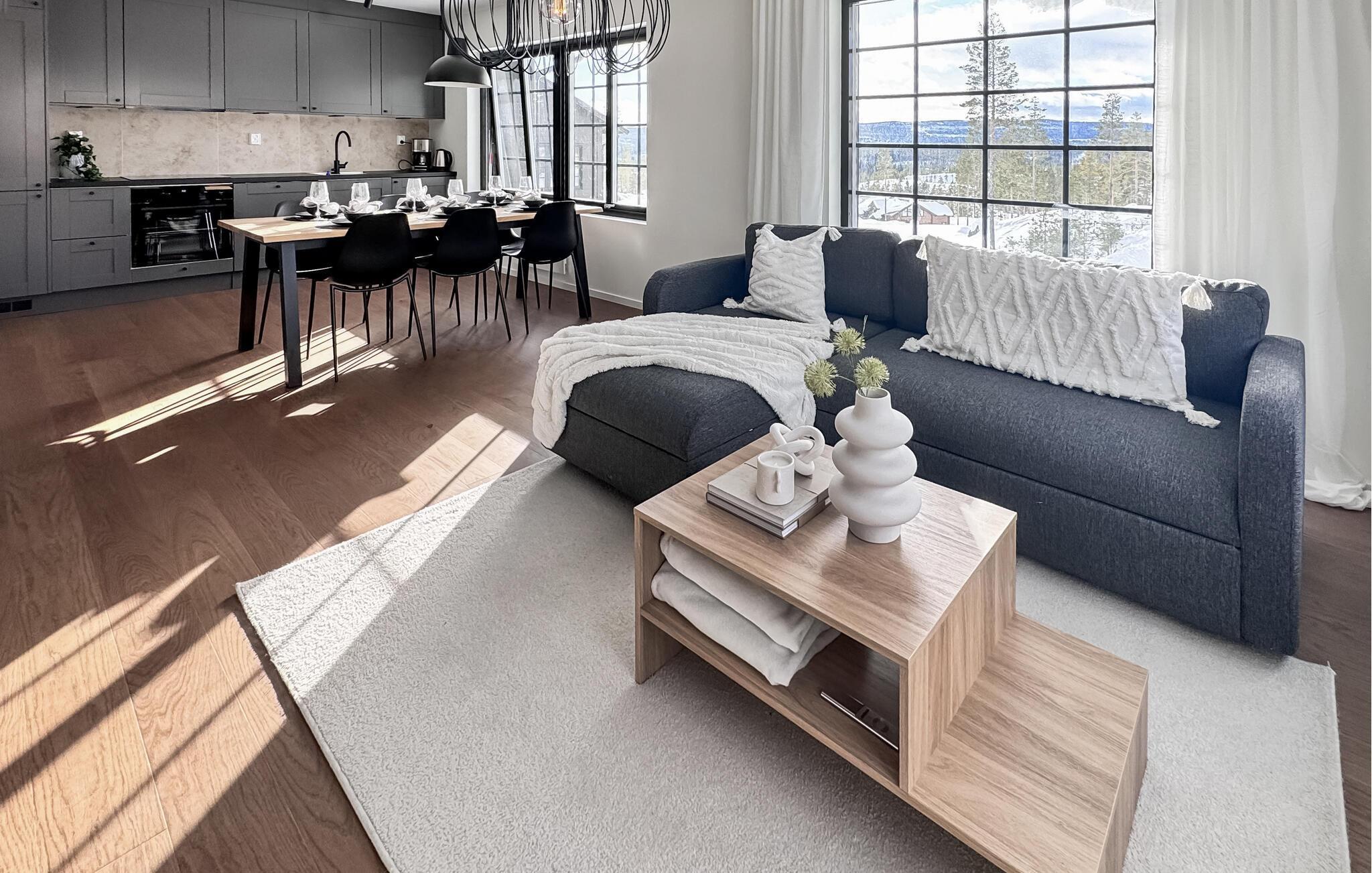 Freuen Sie sich auf Ihren Schweden-Urlaub in dieser eleganten Ferienwohnung nahe dem Idre Fjäll. Ihre stilvoll eingerichtete Wohnung bietet Ihnen ein geräumiges Wohnzimmer, das mit einer komfortablen Sitzgruppe ausgestattet ist. Genießen Sie hier die