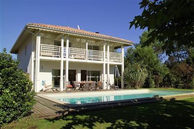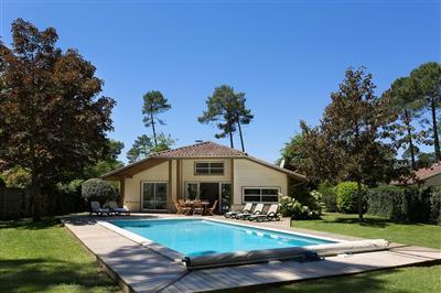 4,2Haustierfreundlicher Golfurlaub Haus: Ruhiges Golf-Refugium mit Garten- und Poolblick Entspannen Sie sich in diesem charmanten, geschmackvoll eingerichteten Haus in ruhiger Lage am renommierten Golfplatz von Moliets. Mit seinem luftigen, offenen Grundriss,