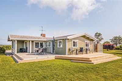 3,8In der Nähe des Badestrands von Holme Strand, am Ende einer Straße, liegt, wunderbar ruhig, dieses Ferienhaus. Von der Terrasse aus kann man ein wenig vom Wasser sehen. Offener Küchen-/Wohnbereich mit Holzofen, der gemütliche Wärme verbreitet. Das Bad wurde