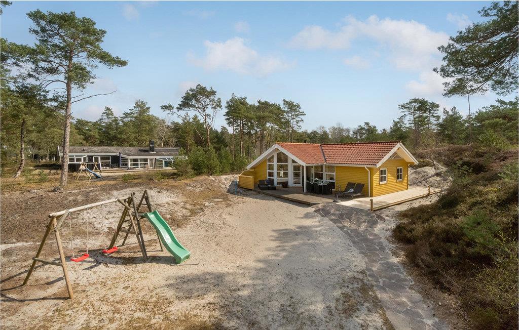 2,0Einladendes, schönes Holzhaus auf einem großen Naturgrundstück, nur 500 m vom Sandstrand und 400 m vom Golfplatz von Dueodde entfernt. Sie werden viele schöne Stunden im Wohnzimmer verbringen, wo Sie fernsehen, Spiele spielen, Radio oder Musik hören und im