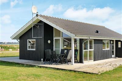 1,0Nur etwa 100 m vom Wasser entfernt, liegt dieses Ferienhaus. Helles Wohnzimmer mit Essplatz in offener Verbindung mit der Küche sowie Ausgang zur Terrasse. Im großen Schlafzimmer steht ein 3/4 Bett und ein Etagenbett. Dieses Zimmer kann in der Mitte