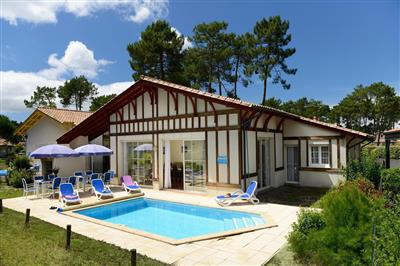 4,2Villa in Frankreich mit Golfplatz & Pool Haus: Diese geräumige Villa im ruhigen Les Villas des Greens du Bassin verbindet klassische Landaise-Architektur mit allem Komfort eines Zuhauses. Mit drei ruhigen Schlafzimmern, einem gemütlichen Zwischengeschoss