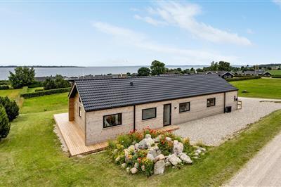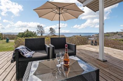 4,5Ferienhaus ganz vorne in der ersten Reihe, auf einem besonders attraktiven Rasengrundstück mit erstklassigem Panorama-Meerblick von sowohl Haus als auch Terrasse! Sie wohnen hier nur etwa 50 m von der Küste, zu der man direkt vom etwas abschüssigen Grundstück