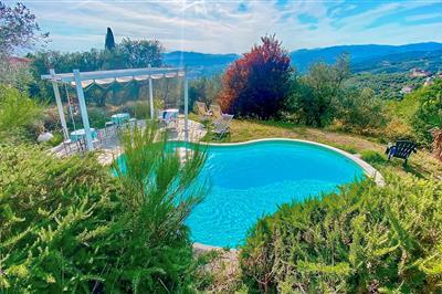 Machen Sie einen Traumurlaub in diesem komfortablen Ferienhaus mit Pool und Panoramablick. Lassen Sie sich von der toskanischen Lebensfreude verzaubern, während Sie mit der Familie oder mit Freunden den rustikalen Charme dieses einzigartigen Feriendomizils