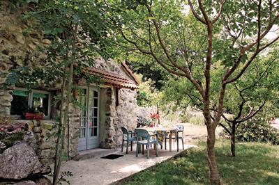 Gönnen Sie sich eine erholsame Auszeit vom Alltag in der grünen Natur der der Ardèche. Willkommen in diesem charmanten und traditionellen Haus aus Naturstein das in einem grünen Garten, der von einem Bach inmitten der Natur gesäumt wird, liegt. Dieses Haus