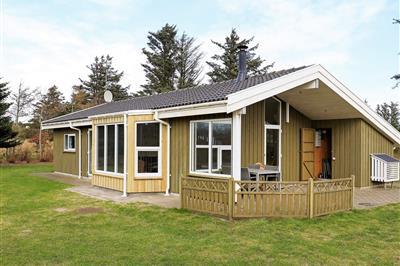 3,7Hell und wohnlich ausgestattetes Ferienhaus mit Sauna im Bad. Liegt in einem attraktiven Ferienhausgebiet, am Ortsrand von Lønstrup. Im Innenbereich gibt es einen offenen Küchen-/Wohnbereich für das Familienleben, mit Holzofen für kühlere und direktem Zugang