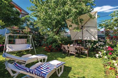 4,3Oberhalb der Kvarner Bucht, in der Nähe von Opatija, im Ort Matulji befindet sich dieses Apartmenthaus. Im Erdgeschoss liegt die einfach und gemütlich eingerichtete Ferienwohnung. Besondere Features sind ein Garten mit viel Grün und eine Terrasse, die Sie