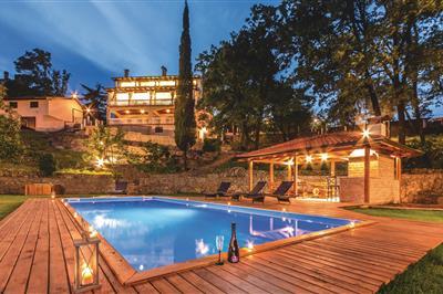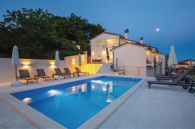 5,0Das moderne Ferienhaus mit Garten befindet sich in der Gegend von Kastav, oberhalb der Riviera von Opatija. Es gibt einen Pool für eine Erfrischung an heißen Sommertagen und eine Terrassen mit Grill zum Entspannen. Im Keller können Sie Ihre Fähigkeiten beim