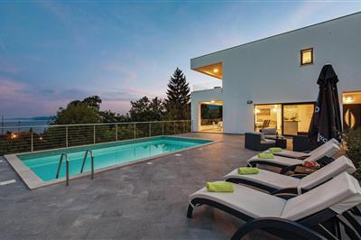 3,0Willkommen in dieser stilvollen und modernen Ferienwohnung mit Meerblick in der Nähe von Opatija. Die moderne Ferienwohnung befindet sich im 1. Stockwerk und bietet Ihnen vom Esszimmer einen atemberaubenden Ausblick auf die Opatija Riviera. Nehmen Sie hier