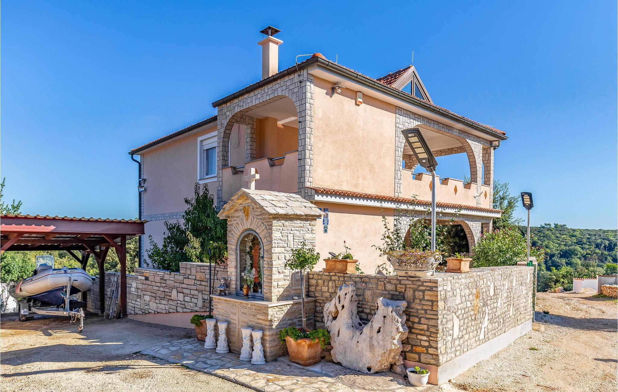Dieses geräumige Ferienhaus befindet sich in Šegotici in der Nähe von Duga Uvala. Das Haus erstreckt sich über zwei Etagen, die durch Innentreppen miteinander verbunden sind. Jede Etage verfügt über drei Schlafzimmer, Küche mit Essbereich, Wohnraum und Bad.