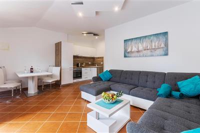 Im kleinen Ort Pavicini und im Erdgeschoss eines Familienhauses befindet sich diese funktionell eingerichtete Ferienwohnung. Neben Wohnküche, Schlafzimmer und Badezimmer steht Ihnen auch eine überdachte Terrasse zur Verfügung. Direkt neben der Terrasse können