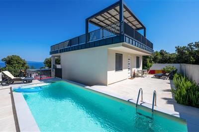 Genießen Sie dieses schöne Ferienhaus mit Swimmingpool, großer Terrasse und Meerblick. In diesem modernen Ferienhaus erwartet Sie ein exklusives Urlaubserlebnis. Das stilvolle Haus besticht durch klare Linien, helle, offene Räume und eine elegante