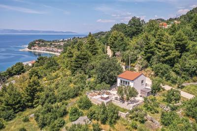 Verbringen Sie einen ruhigen und entspannten Urlaub auf einer Anhöhe mit Panoramaaussicht auf das Meer und die vorgelagerten Inseln. Auf einem geräumigen Grundstück am Fuße des Berges Biokovo liegt dieses helle und einfach eingerichtete Ferienhaus. Vor dem