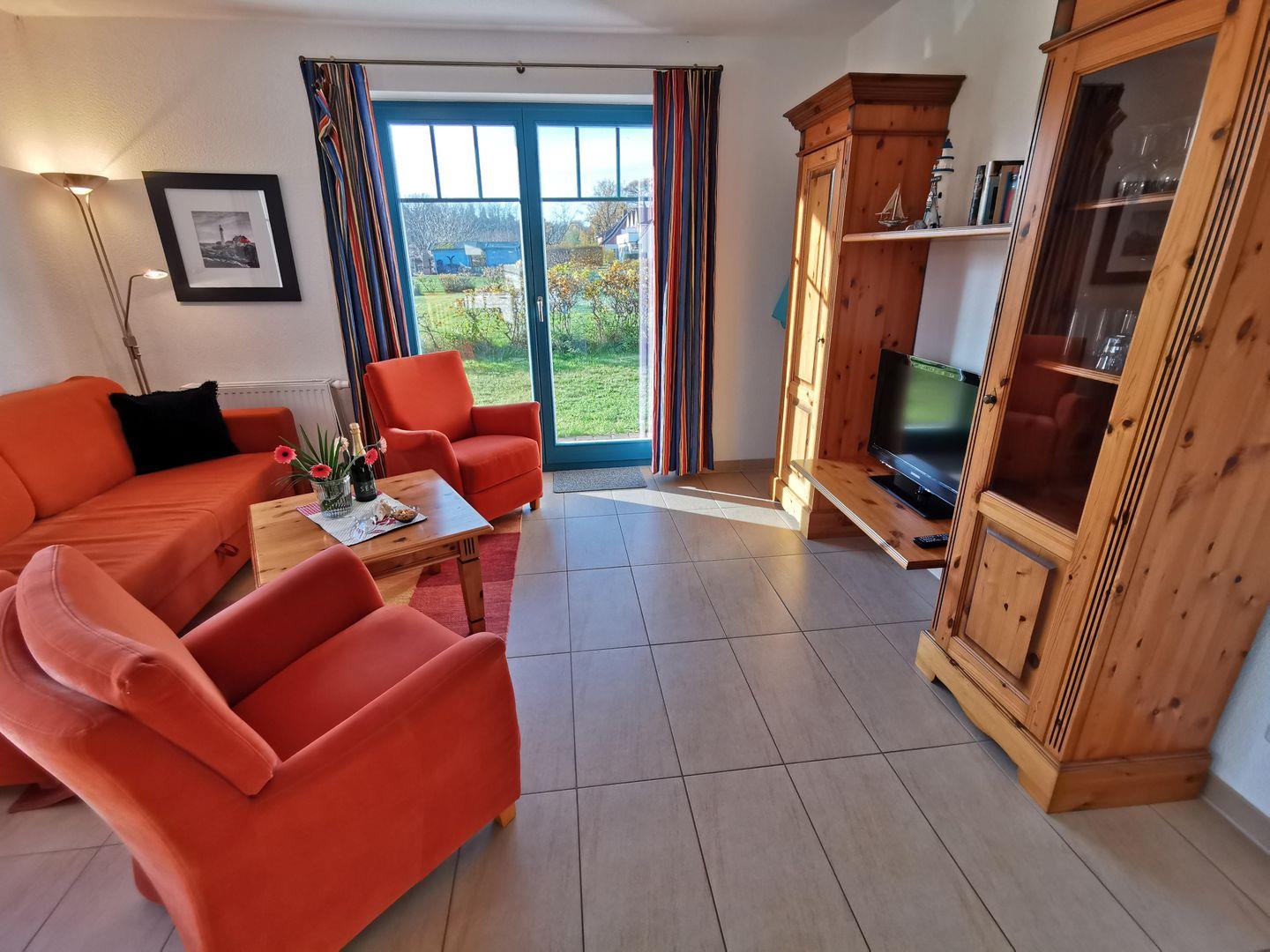 Wunderschöne helle 52qm Wohnung mit Südostbalkon Willkommen in unserer 52 m² Ferienwohnung (ehemals "Börge")! Genießen Sie Helligkeit im Tageslichtbad. Das schöne Sofa und ein bequemer Sessel laden zum Entspannen vor dem TV ein. Die offene Küche ist gut