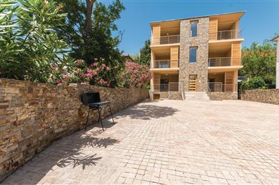 4,3Ferienhaus in Starigrad bei Paklenica Park Haus: In ruhiger Hanglage bietet Ihnen das Ferienhaus vier modern und gut ausgestattete Ferienwohnungen mit Meerblick. Die Apartments im ersten und zweiten Obergeschoss verfügen jeweils über eine private Terrasse