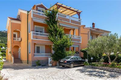Schöne Ferienwohnung in Strandnähe auf der Insel Rab. Im 1. Stockwerk des Hauses mit 5 Wohnungen empfängt Sie hier die größte Wohnung des Hauses. Sie ist ideal für ein Ehepaar oder ein Paar mit Kindern. Kommen Sie an und fühlen Sie sich direkt wohl. Die