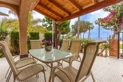 Verbringen Sie Ihre Ferien in 1. Wasserreihe mit Blick auf das Meer, den Strand und die Plamen. Willkommen in diesem schönen Reihenhaus in bester Lage am Strand von Santiago de la Ribera. Das hübsche Haus empfängt Sie mit gemütlichen Schlaf- und Wohnräumen,