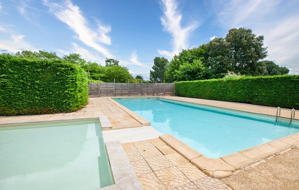 Diese Doppelhaushälfte mit Gemeinschaftspool ist Teil eines authentischen Bauernhauses mit Holzbalken und rustikalen Mauern in dem kleinen Dorf La-Chapelle-Saint-Jean. Sie befinden sich hier 10 km südöstlich von Hautefort und seiner Burg, einer der