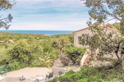 Diese in die korsische Macchia eingebettete Villa, die Sie zur Hälfte bewohnen, ist Teil einer privaten und gesicherten Wohnanlage. Jahrhundertealte und grüne Eichen werfen angenehme Schatten auf die großen Terrassen, und Sie erwartet ein freier Blick auf das