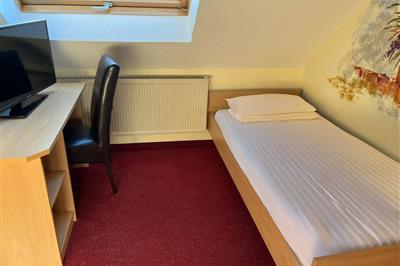 Komfortables Einzelzimmer – Perfekt für Erholung, Arbeit und Austausch Willkommen in unserem charmanten Zimmer für eine Person! Es verfügt über ein komfortables Einzelbett sowie einen modernen Fernseher. Im Erdgeschoss finden Sie einladende