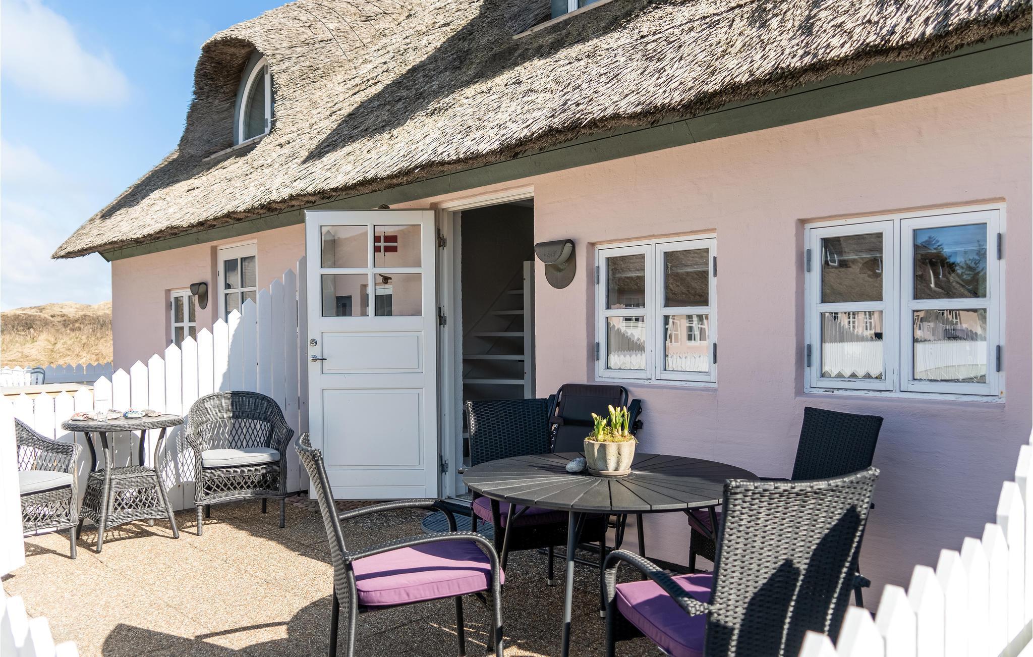 2,7Älteres Ferienhaus auf großem, mit Heidekraut bewachsenem Dünengrundstück. Es hat eine große, ruhige Terrasse, wo die Sonne bei gutem Wetter den ganzen Tag scheint. Etwa 900 m zur Nordseeküste mit guten Bademöglichkeiten. Hier kann man auch den