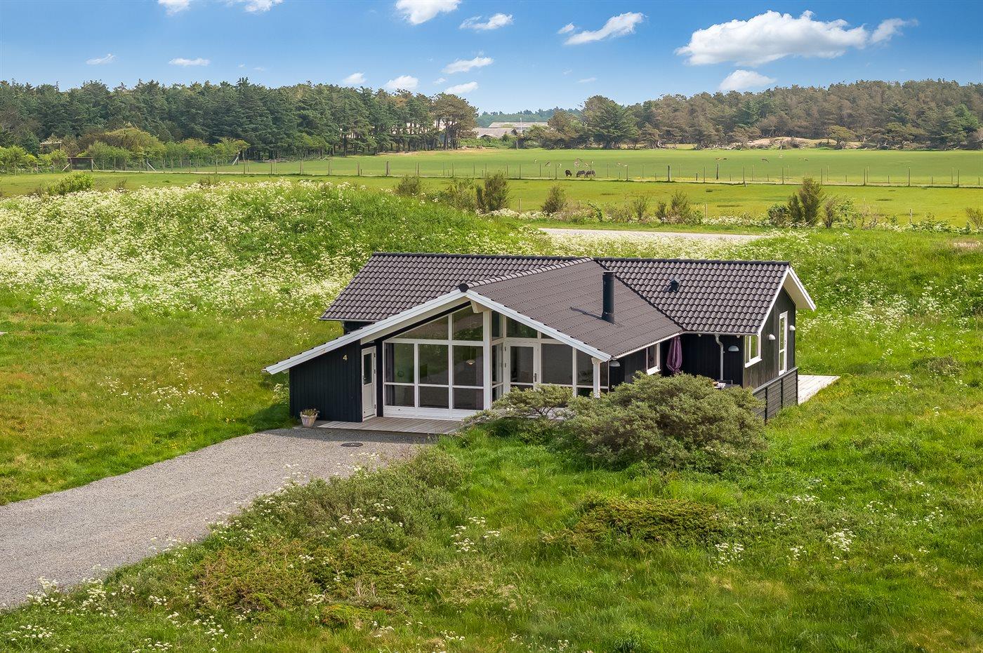 2,0Idyllisch gelegenes Holzhaus auf einem offenen Naturgrundstück inmitten der Dünenlandschaft, mit schönem Ausblick bis zur Küste! Sie wohnen hier an der Jammerbucht, nur etwa 300 m vom attraktiven Tornby Strand. Das traditionelle Ferienhaus ist zweckmäßig
