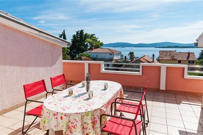 Im schönen kleinen Ort 'Sv. Filip i Jakov' liegt diese Ferienwohnung im Dachgeschoss eines Mehrfamilienhauses. Die Wohnung ist einfach und funktionell eingerichtet und bietet genügend Komfort für die ganze Familie. Von der geräumigen Terrasse erstreckt sich