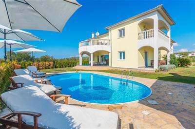 Komfortables Ferienhaus mit Pool und Kinderspielbereich nahe der königlichen Stadt Biograd, in der Sie traumhafte Strände, ausgezeichnete Restaurants und verschiedene Sommerveranstaltungen erwarten. Der nächste Strand ist ein Sandstrand, wo Sie angenehmes